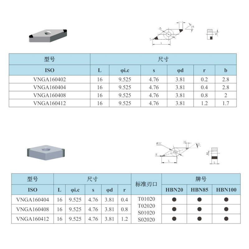 Our VNGA160408-ZH CBN Inserts are specifically engineered for high-performance turning of Grey Cast Iron (GG) and Ductile Cast Iron (GGG). Featuring advanced Cubic Boron Nitride technology, these inserts provide exceptional thermal stability and wear resistance, allowing for significantly higher cutting speeds compared to carbide tools.
