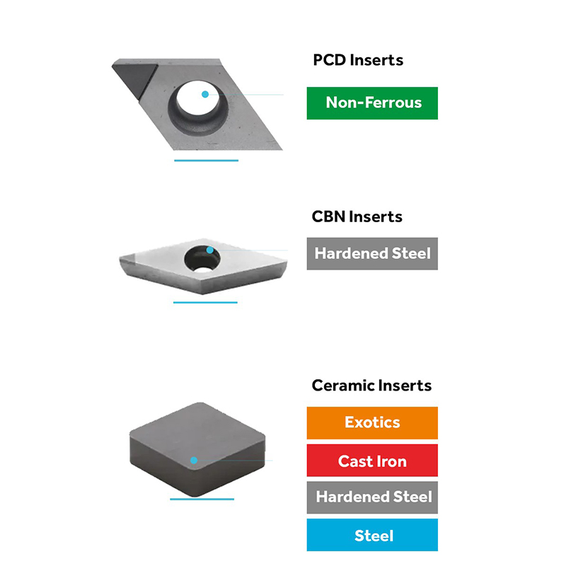 CBN insert can be used for both dry cutting and wet cutting and one grade normally is suitable for machining a variety of materials.