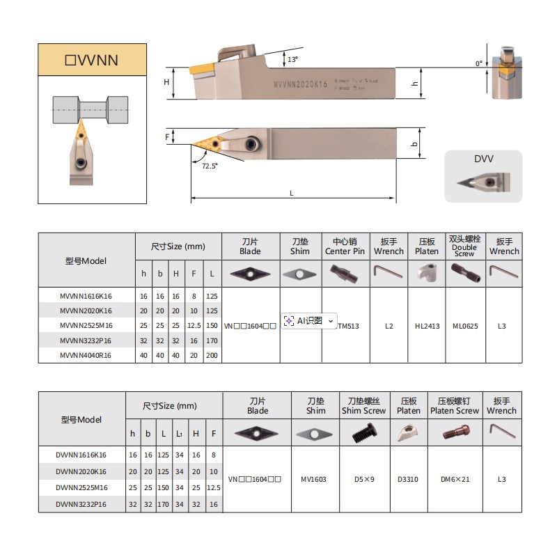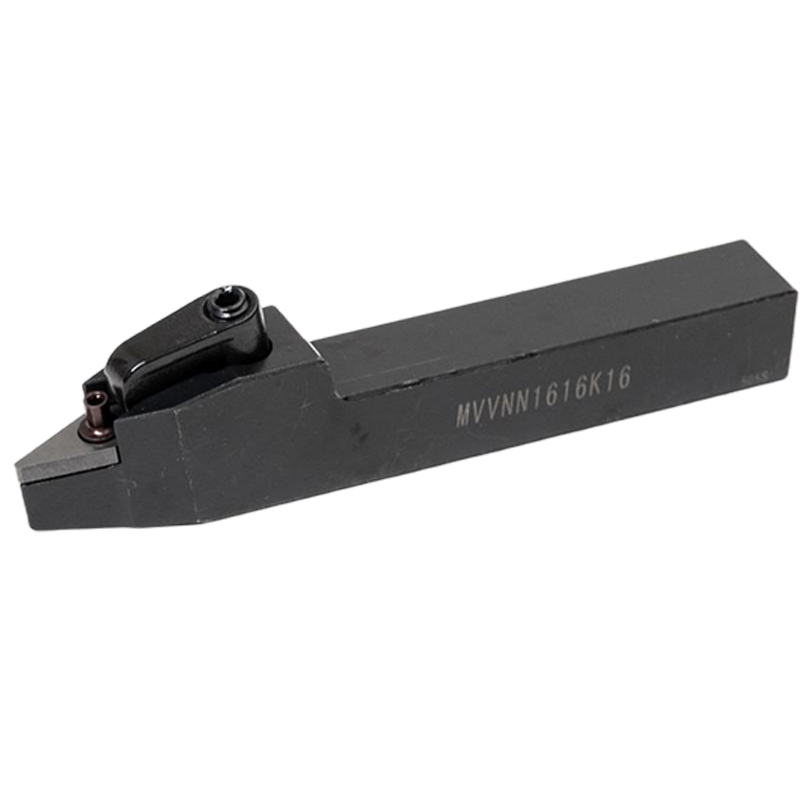 The MVVNN-1616K16 is a high-precision, screw-down type CNC external turning tool holder designed specifically for profiling operations. Featuring a 72.5° approach angle, it allows for versatile cutting directions and excellent clearance, making it an essential tool for intricate external turning and finishing tasks.