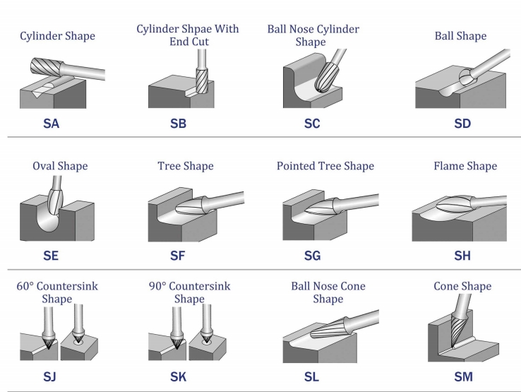 2. Choose the right carbide rotary burr shape and cutting type