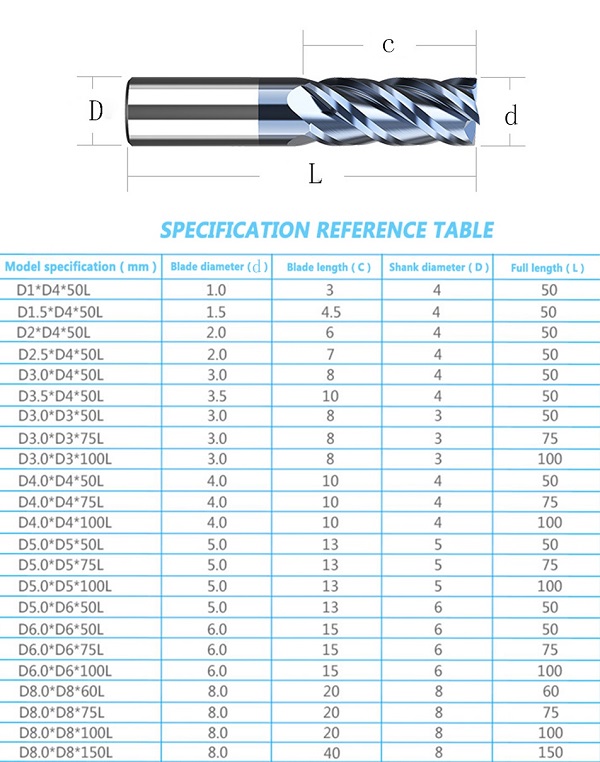 Product Name | 55HRC tungsten carbide 3 flutes CNC end mill cutter |
