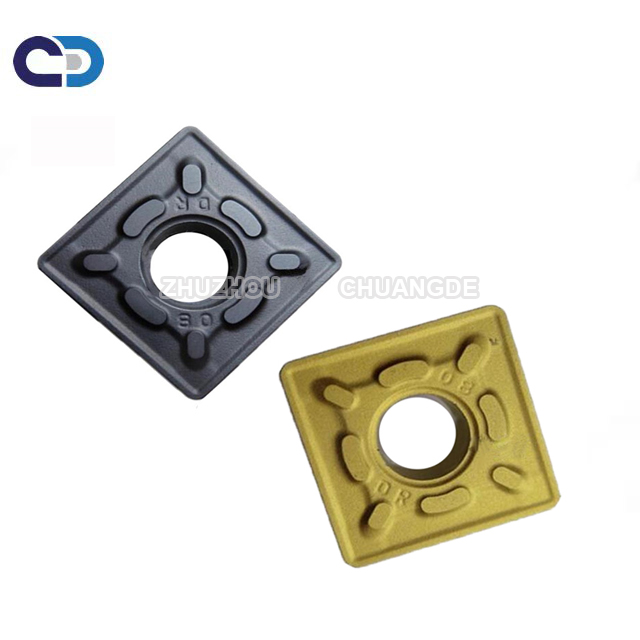 | CD8125 | CVD | black | P10-P40 | The carbide substrate have mild cobalt content and high cubic content, combining with thick TiCN and Al2O3, treated by sepcial technology after coating treatment, which gives inserts strong wearing resistance. It is prority for semi-finishing to finishing steel machining. |