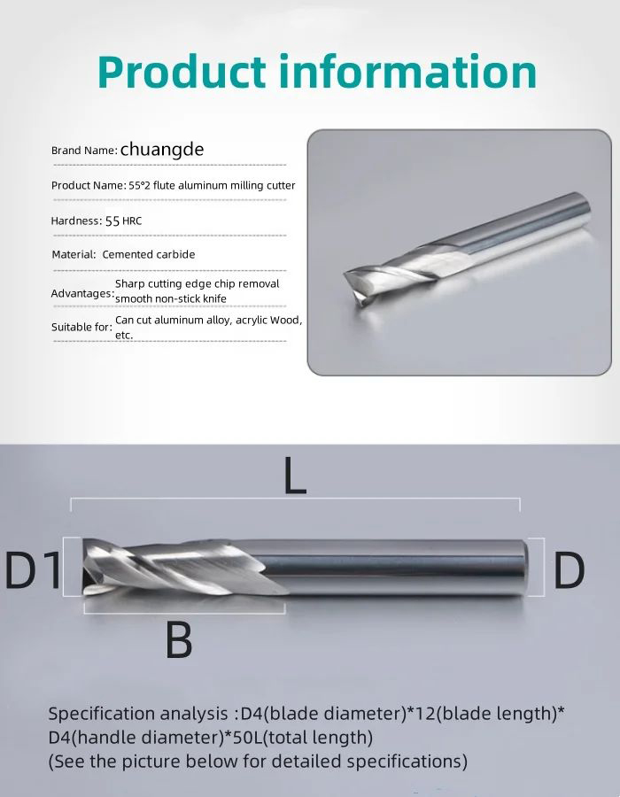 1. Product Name: Chuangde Solid Carbide Endmill CNC Cutter Tool For Metal