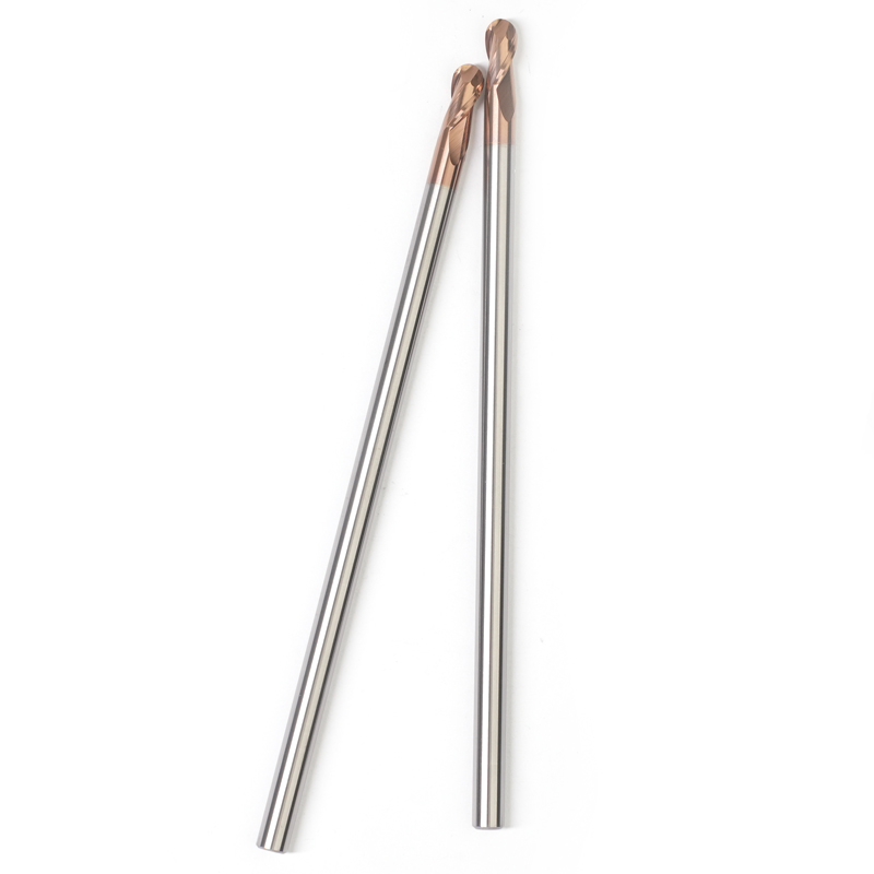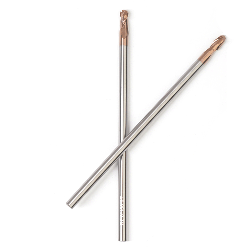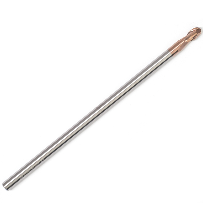 This HRC55 2-flute carbide ball nose end mill is specifically designed for high-precision machining with an extra-long reach. With a total length of 100mm, this tool is ideal for deep-cavity and deep-pocket milling on high-hardness materials where standard tools cannot reach.