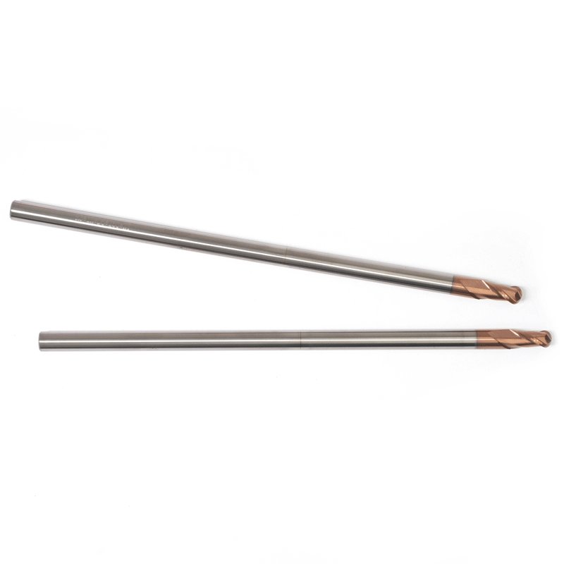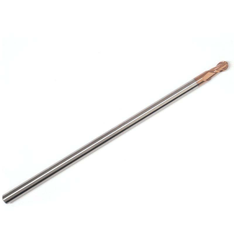 This HRC55 2-flute carbide ball nose end mill is specifically designed for extreme reach and high-precision deep machining. With an impressive total length of 150mm, this tool is essential for deep-cavity and deep-pocket milling on high-hardness materials where no standard tool can reach.