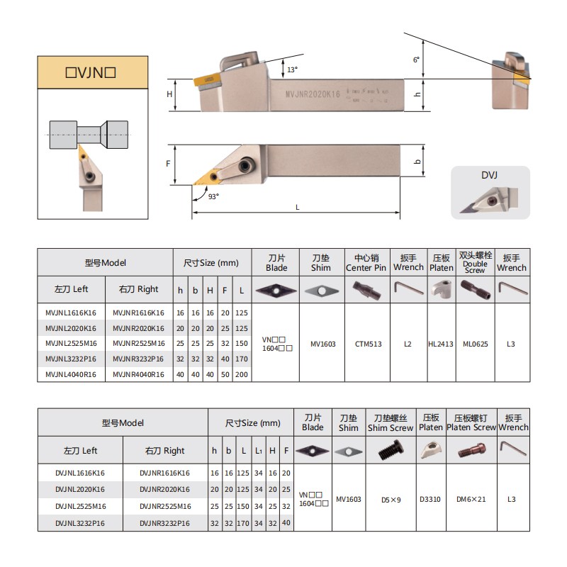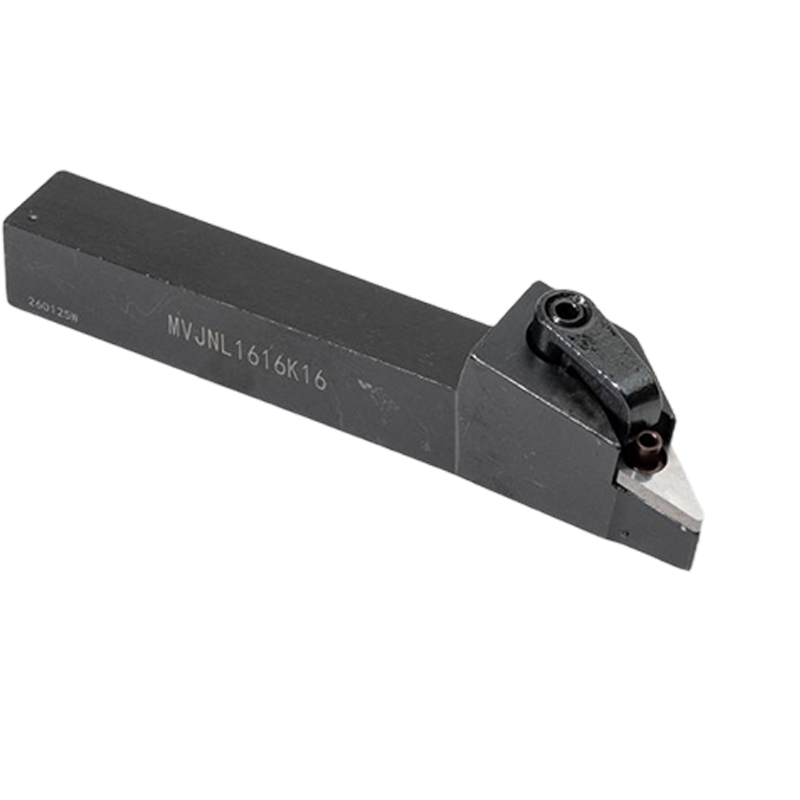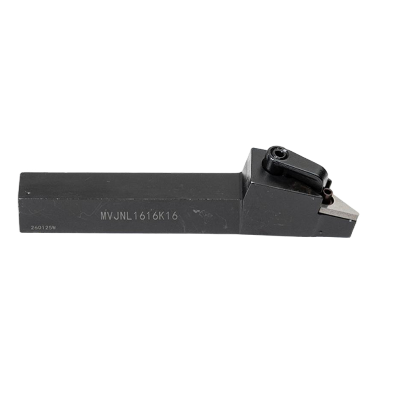 The MVJNR/L 1616K16 is a precision-engineered CNC tool holder designed for external turning and profiling. With a 93° approach angle, it provides excellent clearance for versatile cutting paths. The "J" type clamping system utilizes both a top clamp and a hole-locating pin, ensuring the VNMG1604 insert remains perfectly stationary even under significant cutting forces.
